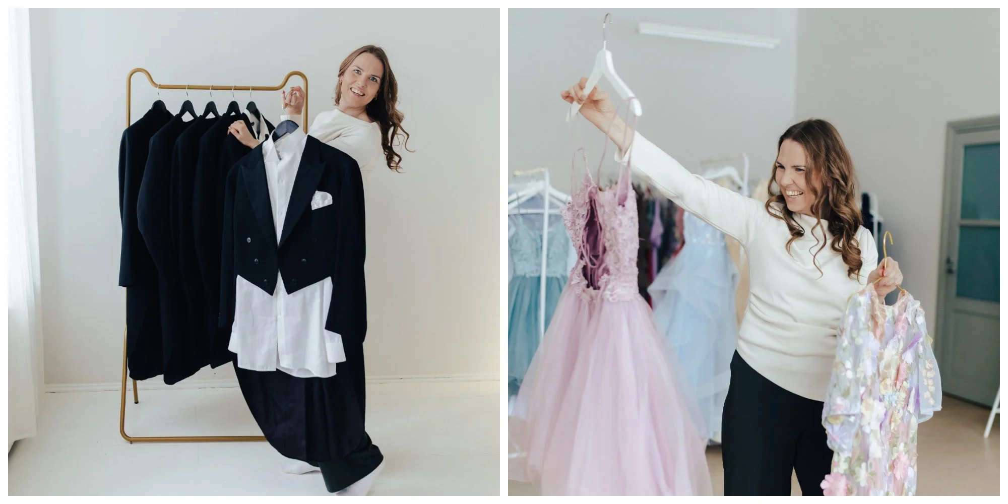 Vuokraamolta löytyy 15 rekillistä mekkoja ja pukuja mm. rippinuorille, tanssiaisiin, kaasoille, morsiamille, sulhasille sekä häävieraille jne. Vain pieni osa on kuvattuna alla. Instagramissa lisää kuvia @pukuvuokraamo_vaasa